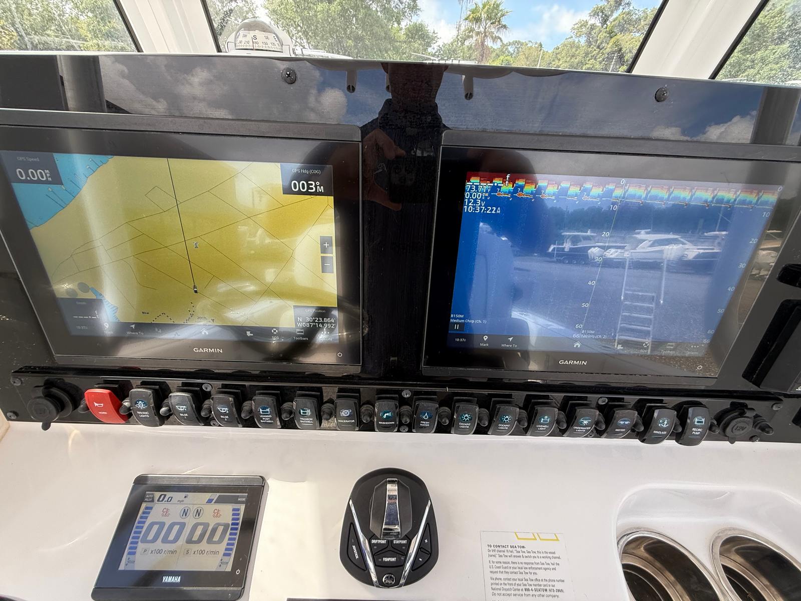 Power and precision define the Sea Hunt 25 Gamefish. Equipped with twin engines delivering a combined 300 horsepower, this center console boat for sale offers impressive acceleration, smooth handling, and the confidence to tackle both calm bays and open waters. The dual-engine setup not only enhances performance but also provides added safety and maneuverability, making docking and navigating tight spaces a breeze. With 271 engine hours, these engines have plenty of life left, promising reliable outings for years to come.