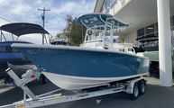OverviewThe 2026 Sea Pro 225 Flxr Center Console is a testament to Sea Pro’s commitment to quality and innovation. Measuring an impressive 21.75 feet in length, this new center console boat offers ample space for both relaxation and activity. The eye-catching Sea Creature blue hull side color, paired with a white hull bottom and matching white powder coat, gives the 225 Flxr a modern, sophisticated look that stands out at any marina or on open water. The white upholstery, complete with a bolster package, ensures both comfort and style, while the bow table with cushion adds a touch of luxury for social gatherings or family picnics on board.