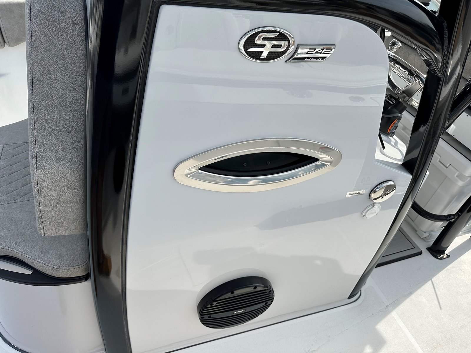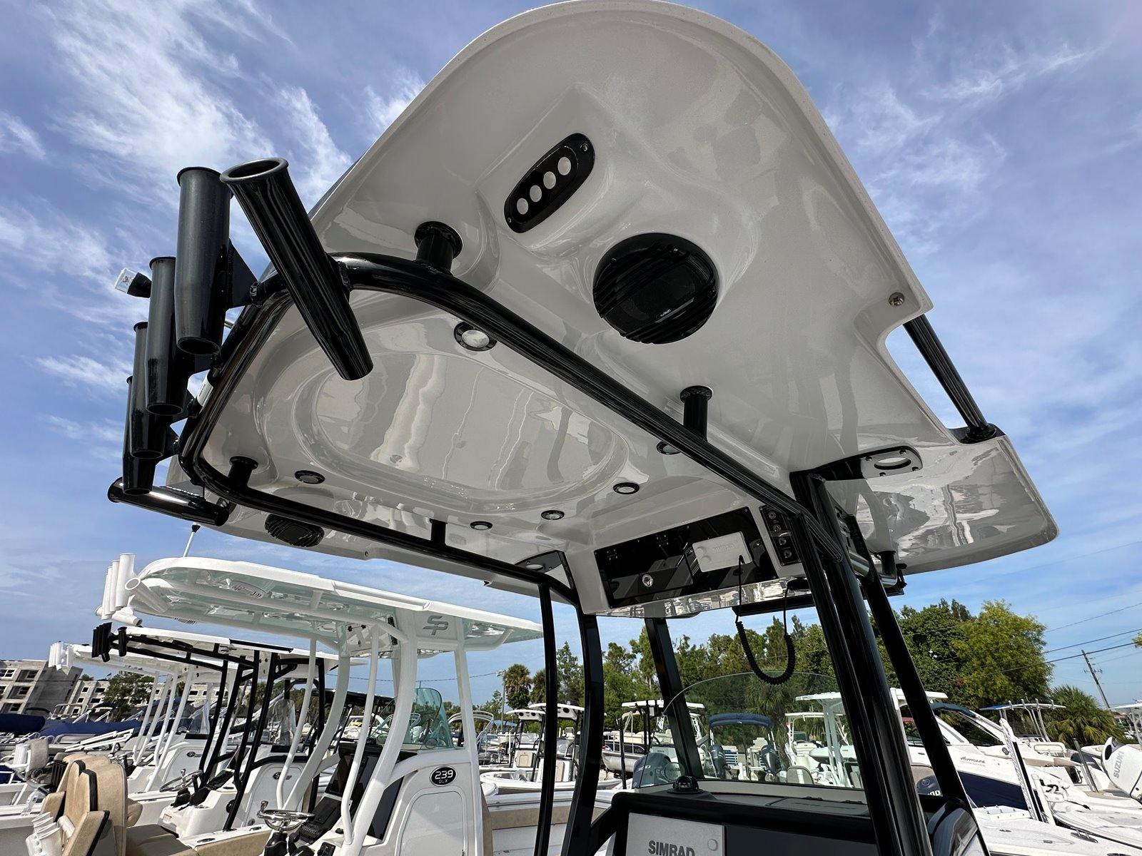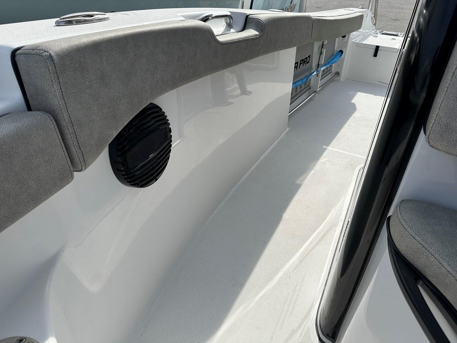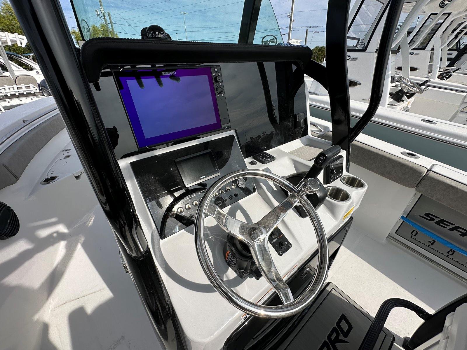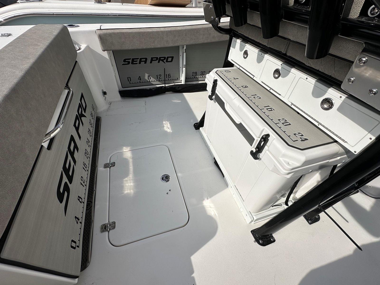 The 2024 Sea Pro 242 DLX is loaded with features designed to enhance your boating experience. The fiberglass hard top, finished in a sleek black, provides excellent protection from the sun and elements while adding a touch of sophistication to the boat’s profile. The platinum underside color not only looks stunning but also showcases the attention to detail that Sea Pro puts into every vessel.Convenience is at the forefront with amenities like a raw water washdown, making it easy to keep your deck clean after a day of fishing or fun. The phone holder and charger ensure your devices stay powered and secure, keeping you connected and entertained throughout your journey. The pump out head with overboard discharge offers added comfort and convenience for longer trips, while the complete bolster package in the upholstery delivers superior seating comfort for all passengers.For anglers, the recessed rod storage ruler pad is a thoughtful addition, providing a dedicated space to store rods and measure your catch. These features, combined with the boat’s spacious layout and smart design, make the Sea Pro 242 DLX a standout choice among center console boats for sale.
