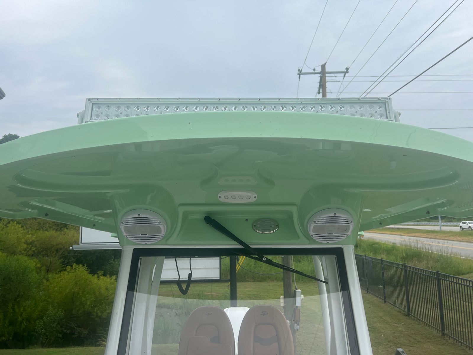 The Sea Pro 242 Sport is loaded with features that enhance both functionality and comfort. The hard top with windshield enclosure offers excellent protection from the elements, allowing you to enjoy your time on the water regardless of the weather. The white powder-coated accents add a touch of elegance and durability, while the stainless steel cup holders (seven in total) ensure that refreshments are always within reach for you and your guests.The hull’s Seafoam color not only looks fantastic but also contributes to the boat’s modern appeal. The Cafe Brown upholstery provides a warm, inviting seating area that is both stylish and comfortable. For added convenience, the fresh water wash down system makes it easy to keep your boat clean after a day of fun.Navigation and connectivity are top-notch, thanks to the Simrad NSX12 unit, which offers advanced chart plotting and fish-finding capabilities. The Sea Pro Connect App brings smart technology to your fingertips, allowing you to monitor and manage key boat functions directly from your mobile device. The hard top is further enhanced by a powerful light bar, ensuring excellent visibility during early morning departures or evening returns.