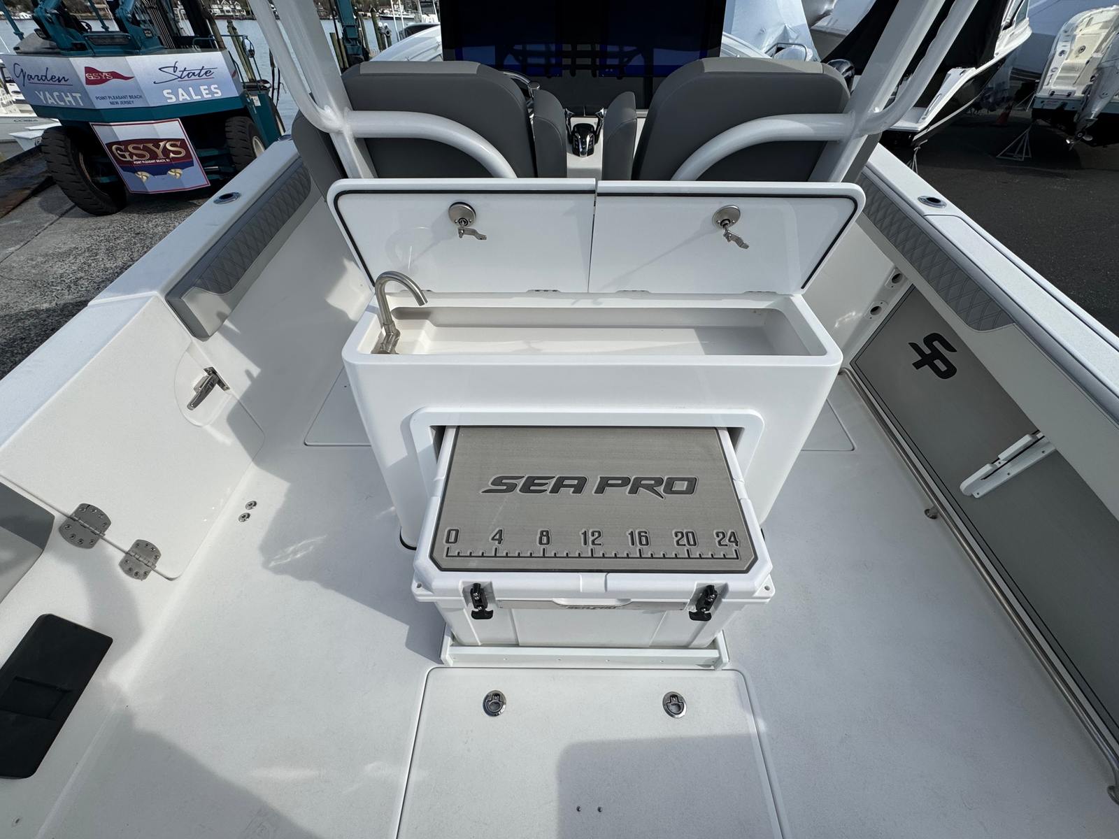 Powering the Sea Pro 322 DLX is a robust 700 horsepower engine, ensuring exhilarating performance and smooth handling in a variety of conditions. Whether you’re cruising along the coastline, heading offshore for a fishing expedition, or enjoying a leisurely day on the lake, this Center Console boat responds with agility and power. The advanced Yamaha Digital rigging system provides precise control and reliability, making every journey effortless and enjoyable. With this much horsepower at your command, you’ll experience rapid acceleration, impressive top speeds, and the confidence to tackle challenging waters.