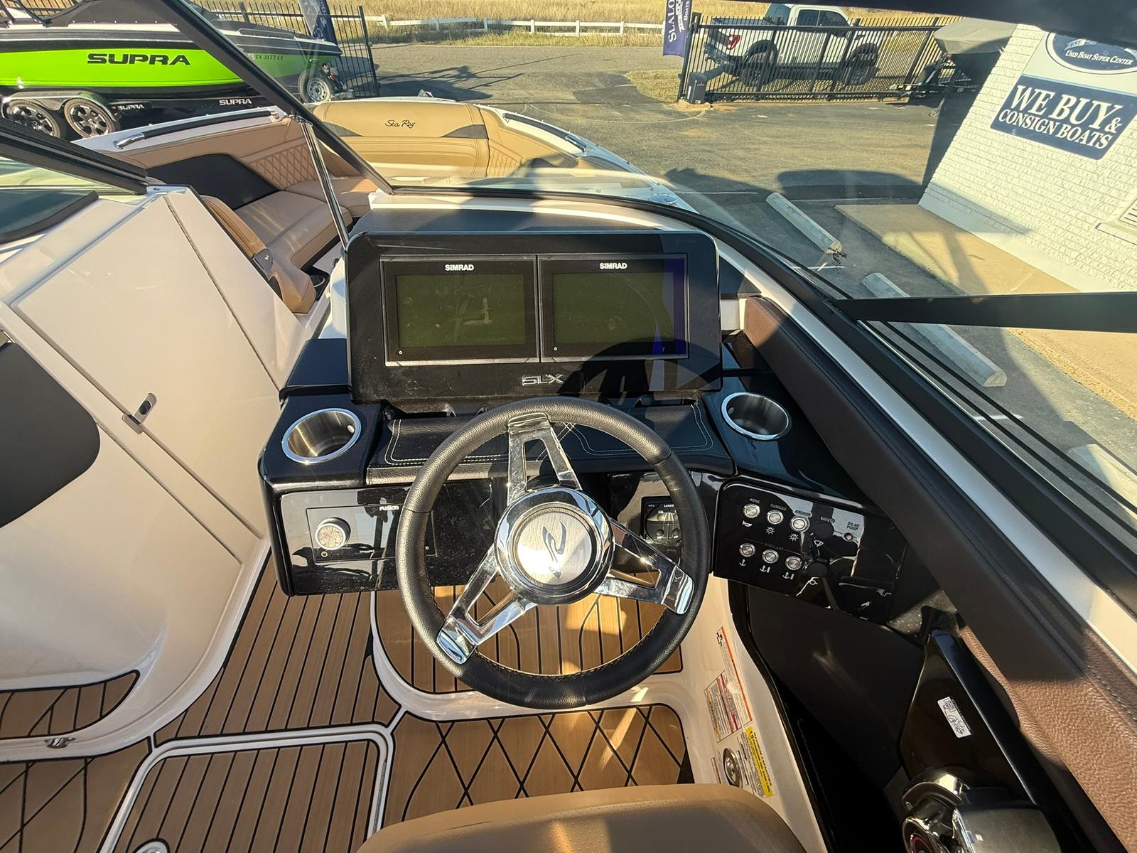 The Sea Ray SLX 260 Bowrider is designed with comfort, convenience, and entertainment in mind. Its spacious cockpit layout allows for easy movement and socializing, while the ergonomic seating ensures everyone on board enjoys a relaxing ride. The 26-foot length provides plenty of room for guests, making it ideal for group outings or family gatherings. The boat’s modern design incorporates high-quality materials and thoughtful details, enhancing both aesthetics and functionality.Special features of the SLX 260 include advanced navigation and control systems, premium upholstery, and ample storage compartments for gear and personal items. The intuitive helm station puts everything at your fingertips, allowing you to focus on enjoying the journey. With its versatile layout, this Bowrider boat for sale adapts to a variety of activities, from sunbathing and swimming to dining and entertaining.