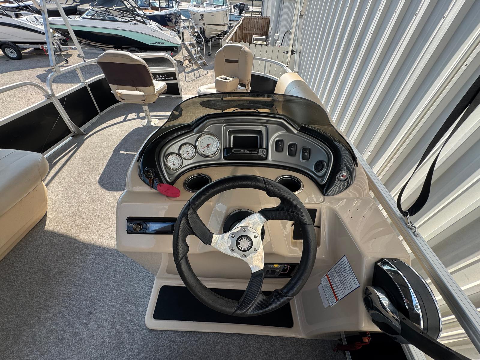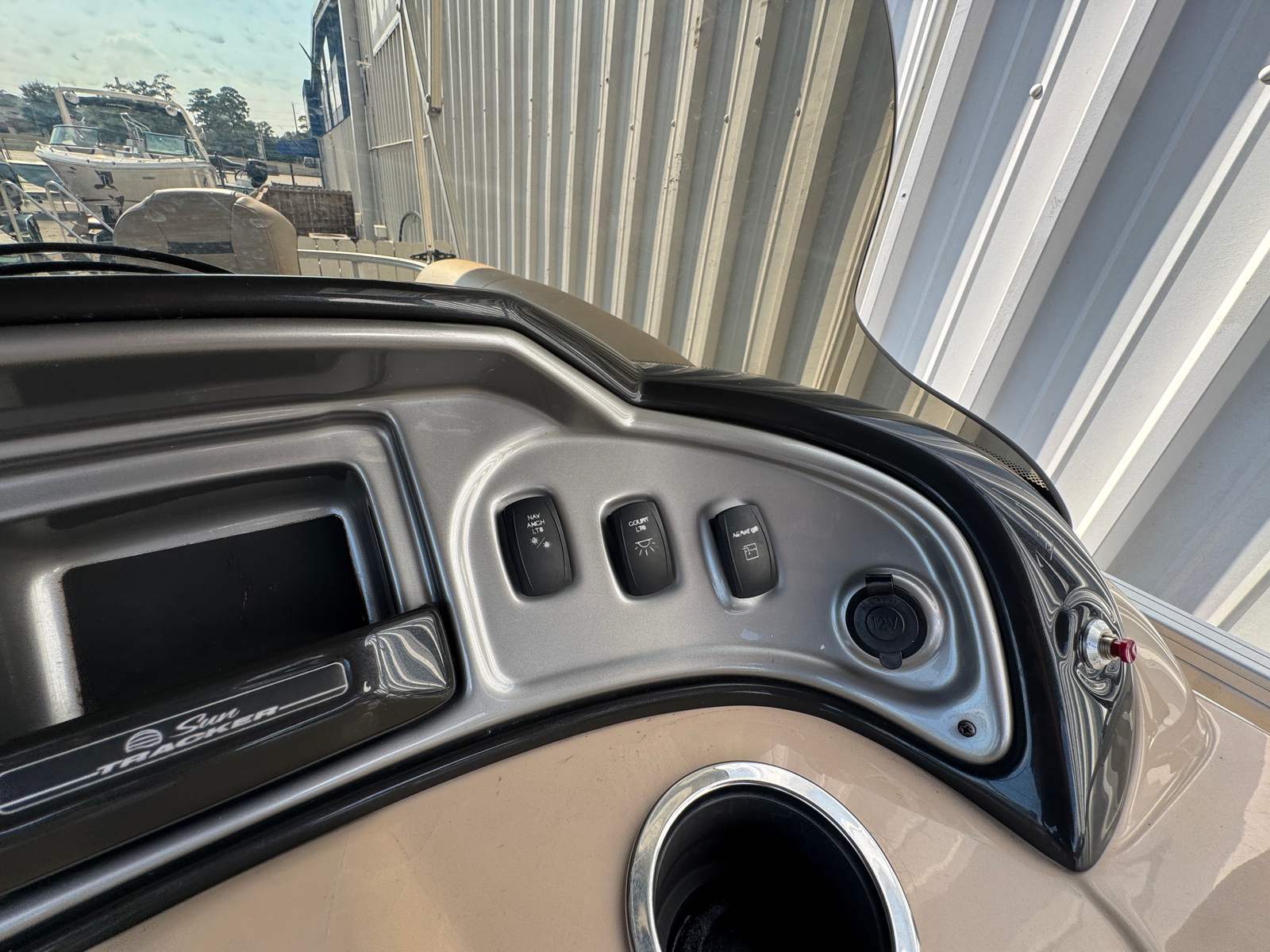 This used 2017 Sun Tracker Fishin Barge 20 DLX stretches a generous 20 feet in length, providing ample space for family gatherings, fishing excursions, or leisurely cruises. Its well-maintained condition ensures you are getting a reliable vessel that has been thoughtfully cared for, with 484 engine hours reflecting its readiness for many more seasons of enjoyment. The pontoon’s classic design and sturdy construction make it a standout choice for anyone seeking a dependable and stylish Sun Tracker boat for sale.