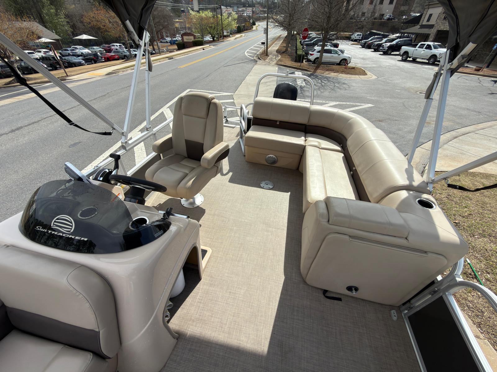 The Sun Tracker Party Barge 20 DLX is designed with comfort and convenience in mind. Its nearly 22-foot length offers ample deck space, allowing you and your guests to move freely and enjoy every moment on board. The open layout is perfect for socializing, with plenty of seating for family and friends. The pontoon’s sturdy construction and thoughtful design ensure a stable, safe ride, even when the water gets a little choppy.Special features of the Party Barge 20 DLX include plush, comfortable seating that invites you to relax and unwind, as well as a spacious deck that is ideal for entertaining. The pontoon’s layout is optimized for both relaxation and activity, making it easy to switch from sunbathing to fishing or from a quiet cruise to a lively party. The durable flooring is easy to clean and maintain, ensuring your boat looks great season after season.