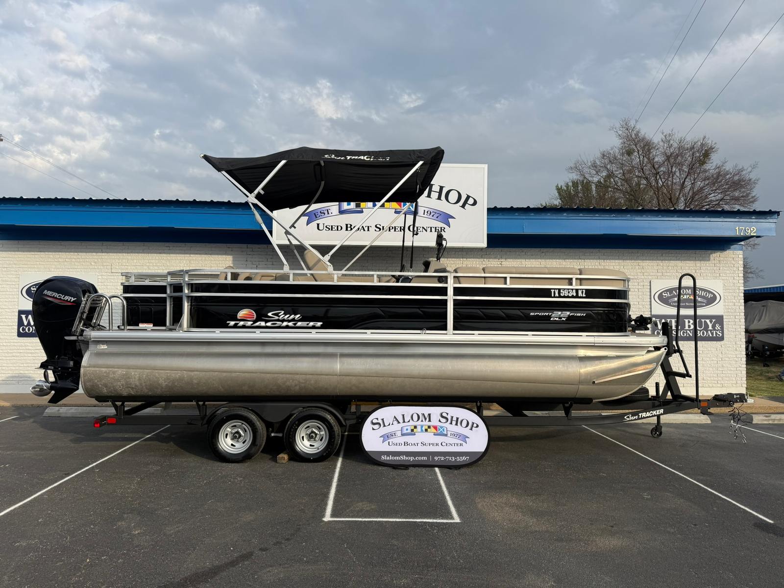 Now available on consignment at our Used Boat Super Center in Lewisville, this 2025 Sun Tracker Sport Fish 22 is the perfect combination of fishing functionality and family cruising comfort. Finished in excellent condition as a freshwater, one-owner boat, this Sport Fish is powered by a Mercury 4-Stroke 150 HP outboard with only 20 hours and a stainless steel 3-blade prop.