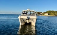 The World Cat 325 DC is a highly sought after model drafting only 16" allowing you to get into shallower waters while still delivering a smooth & comfortable, catamaran offshore ride. With a 10'6 beam, this cat is thoughtfully laid out to delivery any day on the water from fishing, to cruising, island hopping, or simply just catching some rays.